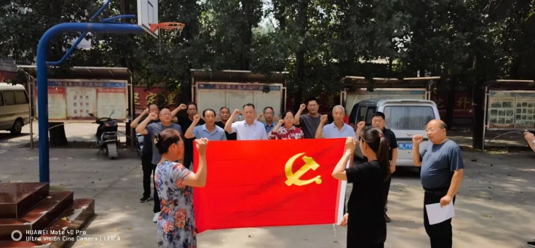 为庆祝中国共产党成立102周年,7月1日,yl7703永利官网总务处党支部与舞阳县莲花镇大赵村党支部举行庆“七一”重温入党誓词活动。