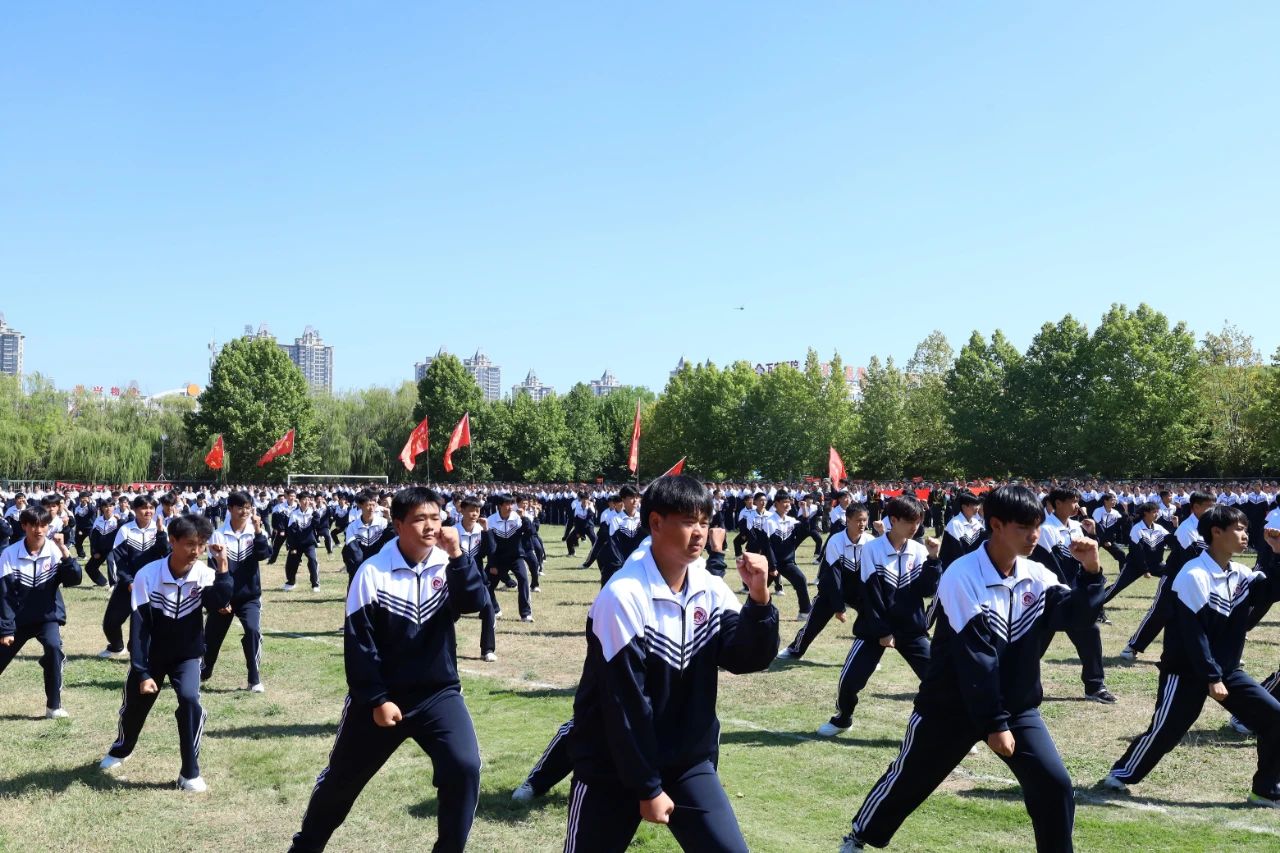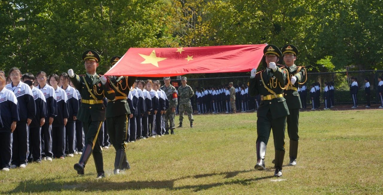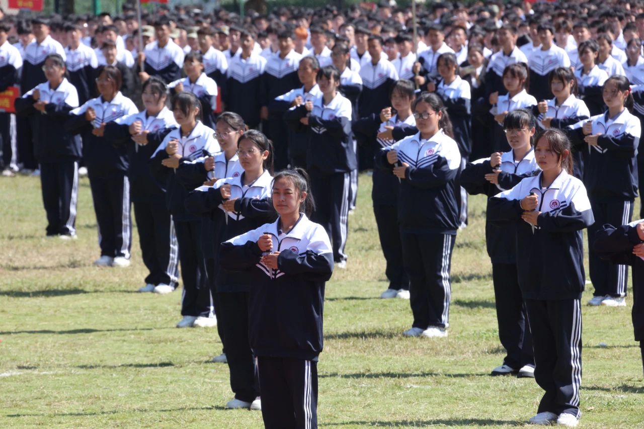 上午10时,在雄壮的国歌声中,全体师生迎着朝阳,肃立行礼,齐唱国歌,2023级新生开学典礼暨军训成果汇报大会正式拉开帷幕。