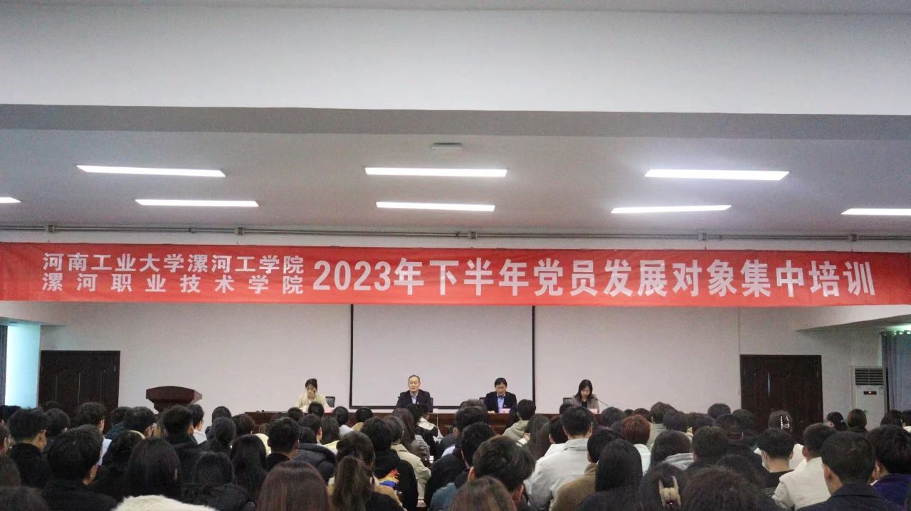 11月23日下午,我院举办河南工业大学漯河工学院、yl7703永利官网2023年下半年党员发展对象集中培训开班仪式。党委副书记薛存心,党委委员、组宣部部长缪俊岭,院团委及相关部门负责同志出席仪式。180余名师生党员发展对象参加仪式。
