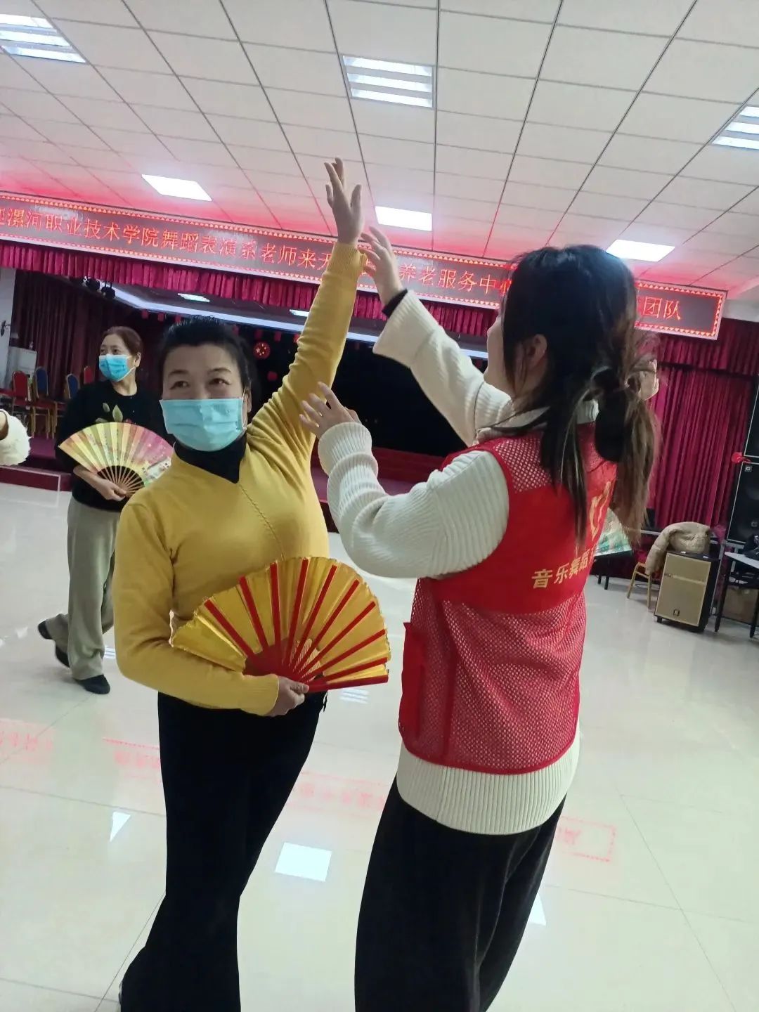以小爱之举,暖夕阳之寂,让温暖化为力量,让爱传承蔓延。在漯河职院志愿者的帮助下,阿姨们的舞蹈看着更赏心悦目了,并达到了长幼共融,老少同乐的良好效果。