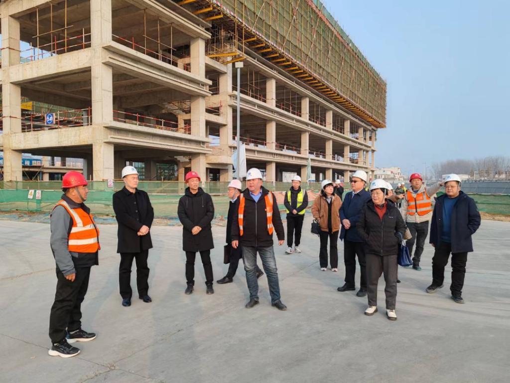 薛存心一行现场听取了经开区校区项目基本情况和目前建设情况的汇报,实地查看了施工进度和各楼的功能布局,与经济技术开发区管理人员、施工方、监理方进行交流,根据学校教学的实际需求,对经开区校区下一步的建设方案、施工进度、功能设计提出了合理建议。