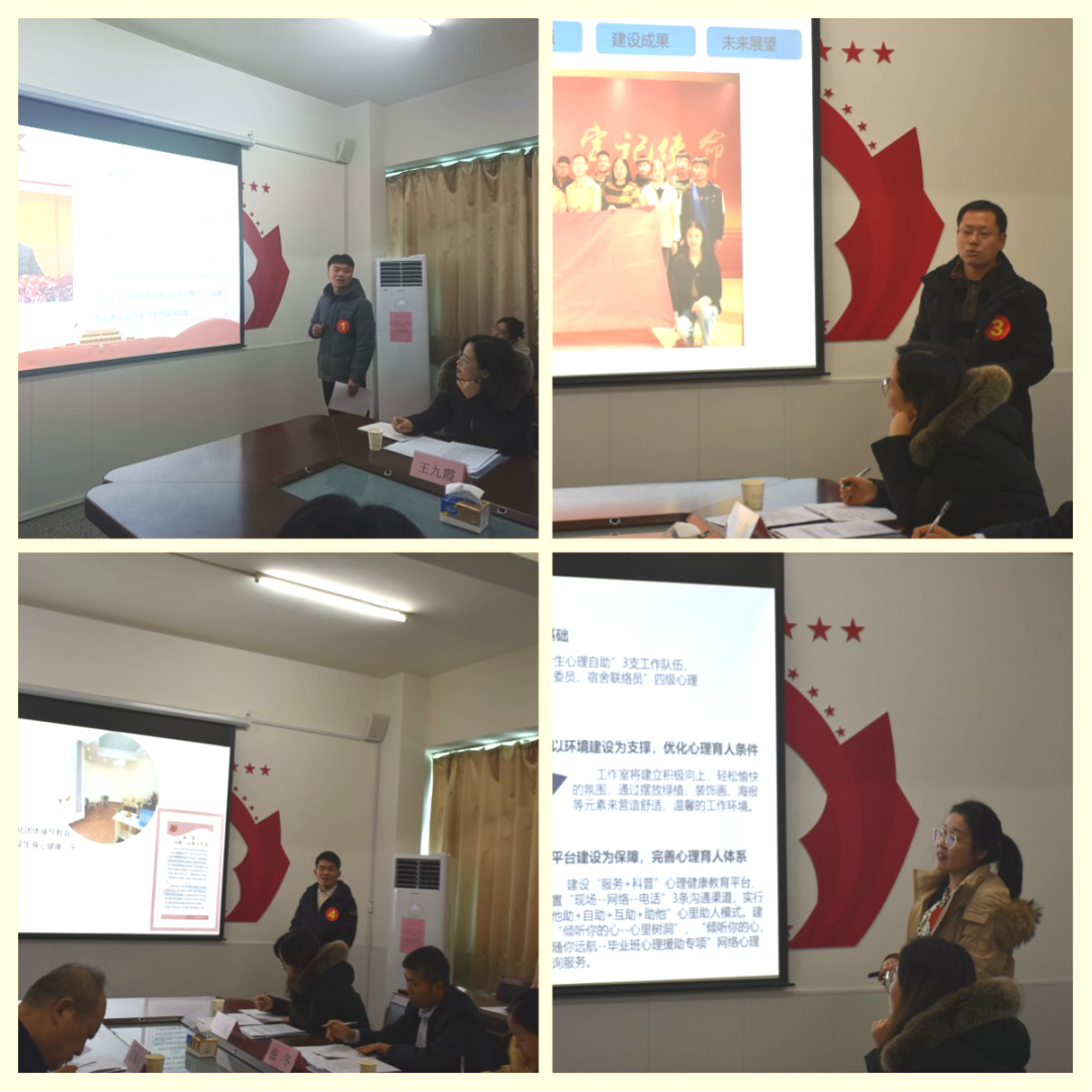 评审会议上,辅导员工作室主持人从工作室建设方向、人员构成、建设思路、工作特色、预期目标与育人成果等方面进行分享。本次辅导员工作室选题丰富,涵盖了党团建设、校园安全与应急管理、心理健康教育、法治宣传教育等方面,充分展现了辅导员在实际工作中对服务与育人工作的思考与探索。我校高度重视辅导员队伍培养,本次建设首批辅导员工作室,旨在凝聚辅导员合力,聚焦学生专项工作,培养专家型辅导员骨干,培育一批有影响力、有知名度的辅导员团队,带动提升辅导员队伍整体水平。下一步,学校将结合专家意见,进一步发挥辅导员工作室的示范带动效应,加强辅导员工作室的内涵建设和品牌塑造,努力形成一批专业性、实效性较强的工作模式和理论成果,引导其更好地发挥先锋队和示范岗的作用,牢记为党育人、为国育才的使命,为培养造就党和人民满意的高素质专业化创新型教师队伍提供有力的服务保障,以更加奋发有为的姿态奋力开创新时代学校学生管理服务工作发展新局面。