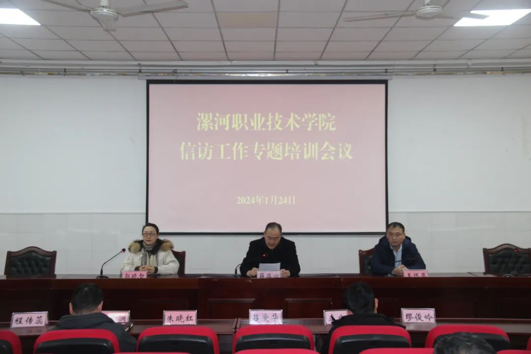 1月24日,yl7703永利官网举办信访工作专题培训会,邀请漯河市信访局复查复核科科长郭晓智、网络信访科科长王怀亚作专题培训。学院党委副书记薛存心主持会议并讲话。学院领导班子成员、副科级以上领导干部、团干部参加培训。