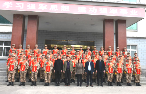 入伍新兵王耀同学代表全体入伍新兵发言。与会领导为新兵同学颁发荣誉证书并与他们合影留念。