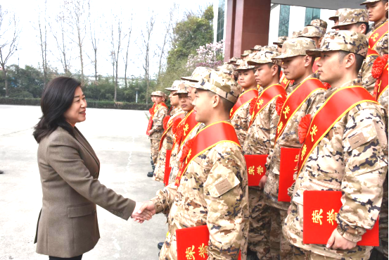 程传蕊代表学院党委及全体师生向应征入伍的同学们表示热烈祝贺,激励在场入伍的学生增强职责使命,勇担历史责任,树牢“强国有我”的决心,并勉励入伍新兵,一要不忘初心,牢记使命。要把漯职学子的高尚品德、进取精神和优良传统带进军营,时刻铭记“知行合一、德技并修”的校训精神,用青春、热血和忠诚守护家园珍惜荣誉。二要完成转变,做好准备。要主动完成从学生到军人身份的转换,利用入伍机会,练就过硬本领,做好艰苦奋斗、甘于奉献、勇于牺牲的准备。三要严守纪律,安心军营。要积极学习军事技能,熟练掌握保家卫国本领,增强组织纪律意识和辨别是非能力。四要牢记自身担负的责任与使命,时刻以保护国家和人民的利益为己任,始终从政治上、思想上、行动上同党中央、中央军委保持高度一致,在祖国和人民需要的时候义无反顾。