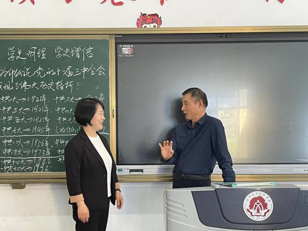 调研组分两组通过随机抽取、推门听课的方式深入思政课堂,分别完整听取了李迎安老师讲授的《中国共产党简史》课程和陈红莉老师讲授的《毛泽东思想和中国特色社会主义理论体系概论》课程。