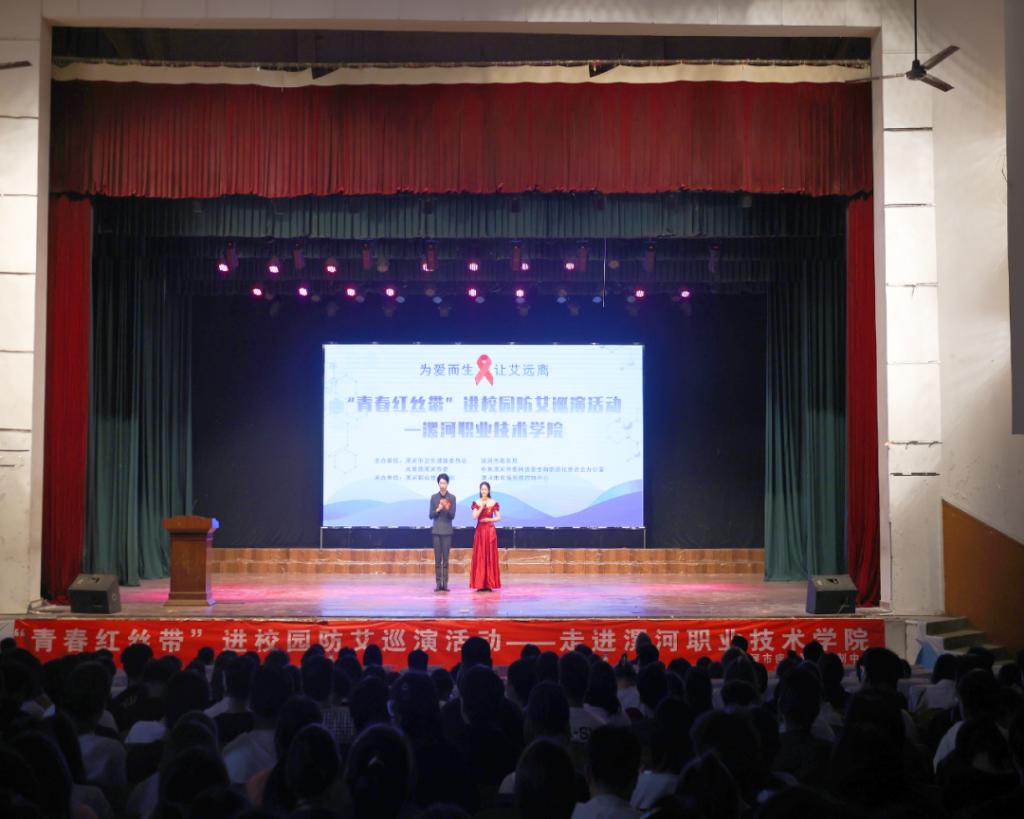10月12日, 由漯河市卫健委、漯河市教育局、共青团漯河市委、漯河市网信办共同组织的“青春红丝带”进校园防艾巡演活动新学期首站在yl7703永利官网举行。漯河市相关部门领导和专家、yl7703永利官网副院长岳春洲出席活动,学院辅导员及各系学生共计700余人参加。