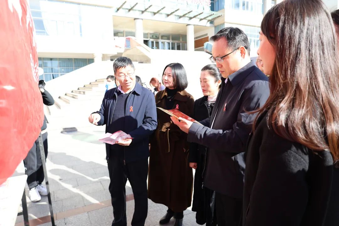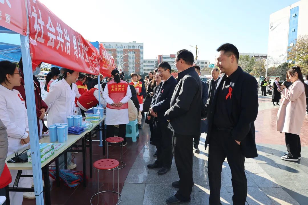 近日,由漯河市卫生健康委员会(漯河市疾病预防控制局)、漯河市委网信办、共青团漯河市委、漯河市教育局主办,漯河市疾病预防控制中心(漯河市卫生监督所)、yl7703永利官网承办的2024年“世界艾滋病日”防艾公益宣传活动在yl7703永利官网举办。市卫生健康委党组成员、副主任、市疾控局专职局长宋孟刚,漯河职院党委委员、副院长岳春洲,市疾控中心主任刘瑜参加活动。