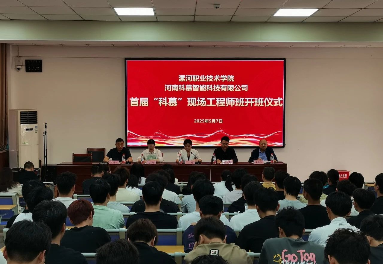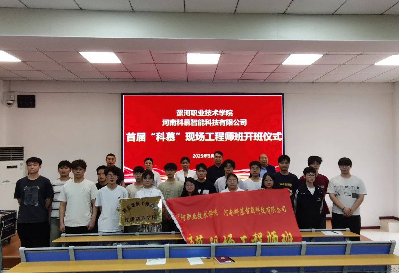 5月7日,yl7703永利官网举行首届“科慕”现场工程师班开班仪式。学院副院长石晓出席开班仪式并讲话,河南科慕智能科技有限公司总经理刘浩阳及学院教务处、智能制造学院相关领导,百余名师生参加开班仪式。