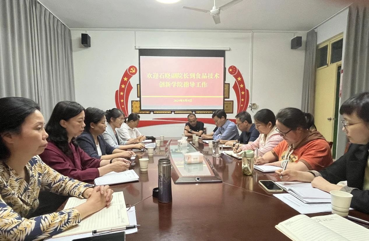 石晓认真听取了食品技术创新学院近几年发展情况的报告,并详细询问了院系在发展过程中遇到的困难和瓶颈,与到会教师进行了深入的交流和研讨。