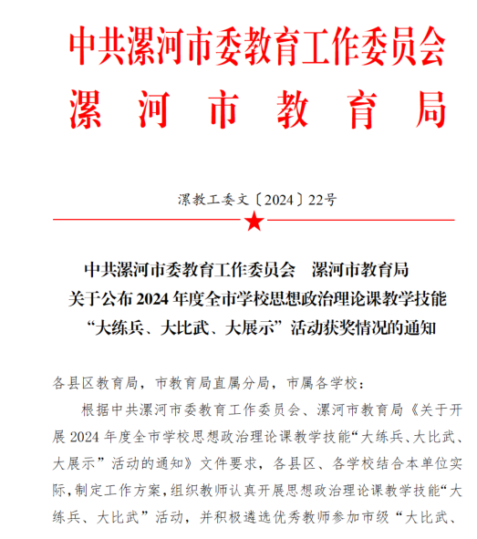 喜报!漯河职院教师在全市学校思想政治理论课教学技能"大练兵、大比武、大展示"活动荣获特等奖