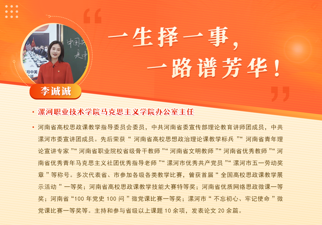 近日,中共河南省委组织部办公室下发《关于成立河南省“党课开讲啦讲师团”的通知》(豫组办〔2024〕7号),yl7703永利官网青年教师李诚诚成功入选河南省“党课开讲啦讲师团”成员。与此同时,中共河南省委教育工委办公室,河南省教育厅办公室下发《关于公布河南省高校青年宣讲名师工作室名单的通知》(豫教工委办〔2024〕39号),李诚诚老师再次获评“河南省青年宣讲名师工作室(培育)”主持人。长期以来,漯河职业技术学...