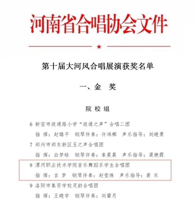 喜报!漯河职院学生合唱团荣获河南省第十届大河风合唱展演金奖