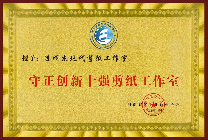 喜报!漯河职院“陈明杰现代剪纸工作室”被授予“守正创新十强剪纸工作室”
