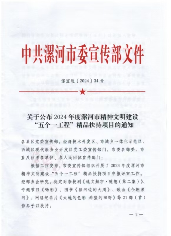 音乐舞蹈系原创舞剧《贾湖笛韵》荣获2024年度漯河市精神文明建设“五个一工程”精品扶持项目